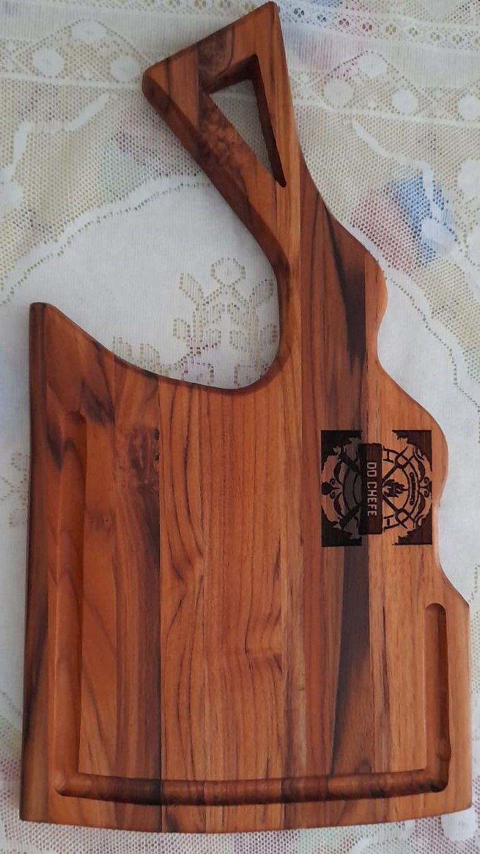 Tábua para churrasco em Teca personalizada de acordo com o cliente, fabricação artesanal, tratada em óleo mineral e cera de abelha na medidade de 28x47x2,5 cm